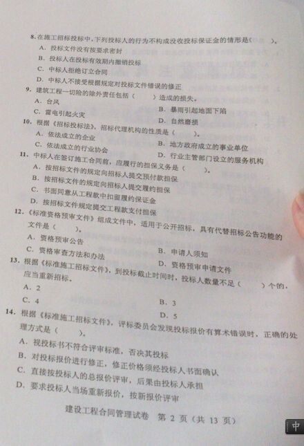 2014監理工程師考試《合同管理》真題圖片(完整版)