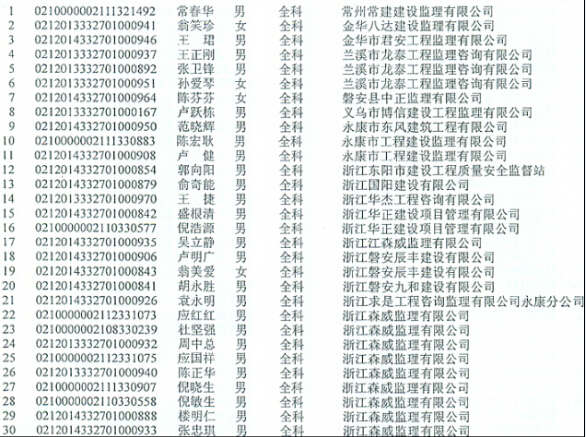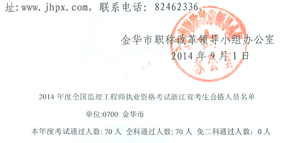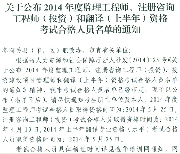 摘要 關于公布金華2014年度監理工程師考試合格人員名單的通知。