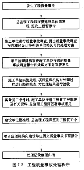 工程質量事故發生后,項目監理機構可按以下程序進行處理,如圖7-2所示
