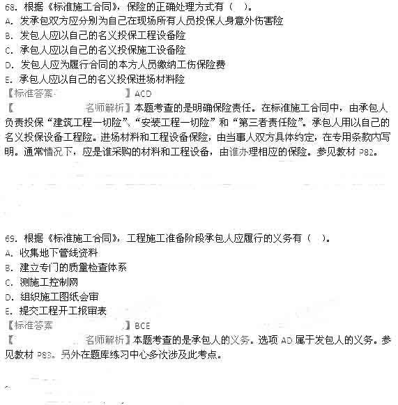 【老師解析】本題考查的是保險(xiǎn)責(zé)任。承包人應(yīng)為其履行合同所雇傭的全部人員投保工傷保險(xiǎn)和人身意外傷害保險(xiǎn),并要求分包人也投保此項(xiàng)保險(xiǎn)。發(fā)包人應(yīng)為其現(xiàn)場(chǎng)機(jī)構(gòu)雇傭的全部人員投保工傷保險(xiǎn)和人身意外傷害保險(xiǎn),并要求監(jiān)理人也進(jìn)行此項(xiàng)保險(xiǎn)。參見(jiàn)教材P116。