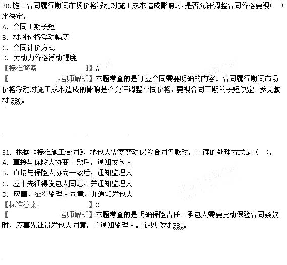 【老師解析】本題考查的是訂立合同時(shí)需要明確的內(nèi)容。價(jià)格指數(shù)應(yīng)首先采用工程項(xiàng)目所在地有關(guān)行政管理部門(mén)提供的價(jià)格指數(shù),缺乏上述價(jià)格指數(shù)時(shí),也可采用有關(guān)部門(mén)提供的價(jià)格代替。用公式法計(jì)算價(jià)格的調(diào)整,既可以用支付工程進(jìn)度款時(shí)的市場(chǎng)平均價(jià)格指數(shù)或價(jià)格計(jì)算調(diào)整值,而不必考慮承包人具體購(gòu)買(mǎi)材料的價(jià)格貴賤,又可以避免采用票據(jù)法調(diào)整價(jià)格時(shí)每次中期支付工程進(jìn)度款前去核實(shí)承包人。參見(jiàn)教材P80。