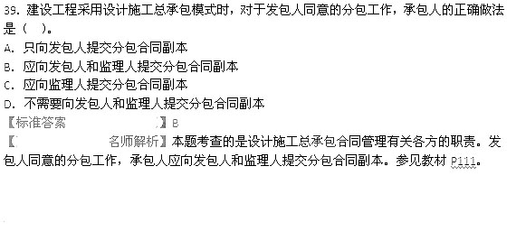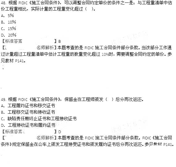 【老師解析】本題考查的是FIDIC施工合同條件部分條款。選項(xiàng)A錯(cuò)誤,指定分包商是指由雇主或工程師選定與承包商簽訂合同的分包商,完成招標(biāo)文件中規(guī)定承包商承包范圍以外工程施工或工作的分包人;選項(xiàng)C錯(cuò)誤,給指定分包商支付的工程款,從承包商投標(biāo)報(bào)價(jià)中未攤?cè)霊?yīng)回收的間接費(fèi)、稅金、風(fēng)險(xiǎn)費(fèi)的暫定金額內(nèi)支出。參見(jiàn)教材P141。
