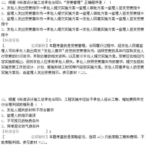 【老師解析】本題考查的是缺陷責(zé)任期管理。選項(xiàng)C錯(cuò)誤,竣工后試驗(yàn)按專(zhuān)用條款的約定由發(fā)包人或承包人進(jìn)行,并不是由監(jiān)理人組織;選項(xiàng)D錯(cuò)誤,工程經(jīng)竣工驗(yàn)收合格,監(jiān)理人經(jīng)發(fā)包人同意后向承包人簽發(fā)工程接收證書(shū),并不是竣工后試驗(yàn)合格。參見(jiàn)教材P124。