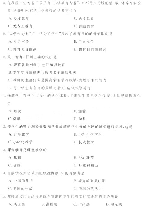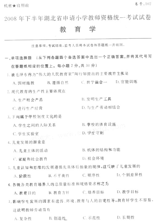 - 2025下半年小學教師資格證考試真題(結構化+各科試講)2025-12-08