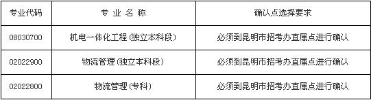 2、考生選擇確認(rèn)點(diǎn)時(shí)注意:報(bào)考下列專業(yè)的考生在選擇確認(rèn)點(diǎn)時(shí),必須按下表選擇指定的確認(rèn)點(diǎn)。