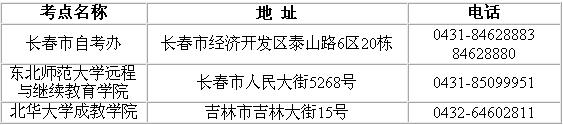 吉林省高等教育自學考試辦公室委托長春市自考辦、東北師范大學遠程與繼續教育學院和北華大學成教學院為報考點。(考點聯系方式附后)請長春市自考辦與各市(州)教育局人事部門及有關院校聯系并通知參考對象,組織做好報名報考工作。請東北師范大學遠程教育學院、北華大學成教學院通知本??忌⒔M織做好本校學生的接待報名報考工作。