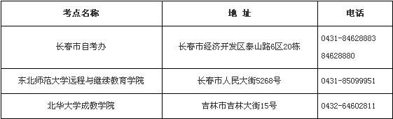 吉林省高等教育自學考試辦公室委托長春市自考辦、東北師范大學遠程與繼續教育學院和北華大學成教學院為報考點。(考點聯系方式附后)請長春市自考辦與各市(州)教育局人事部門及有關院校聯系并通知參考對象,組織做好報名報考工作。請東北師范大學遠程教育學院、北華大學成教學院通知本??忌?,并組織做好本校學生的接待報名報考工作。