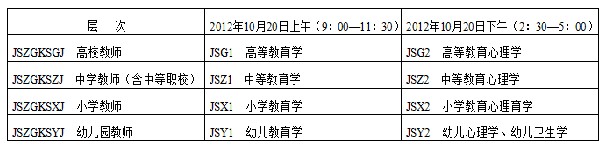 (三)“教師資格考試”設置的層次和考試科目如下表, 用于“教師資格考試”的考號只能選擇表中所列層次及相應課程。