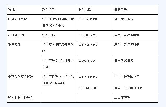 2、甘肅省高等教育自學考試商務管理專業2013年1月考試時間安排表。
