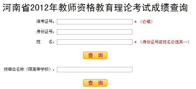 河南省2012年教師資格教育理論考試成績查詢