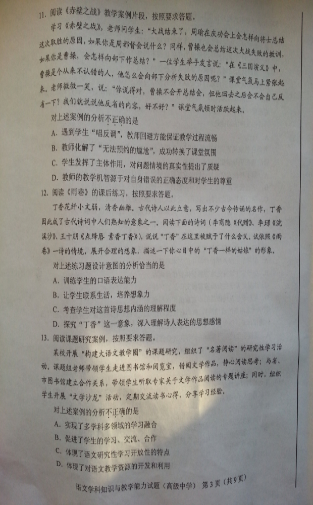 2012下半年《語文科學知識與教學能力》真題(高級中學)