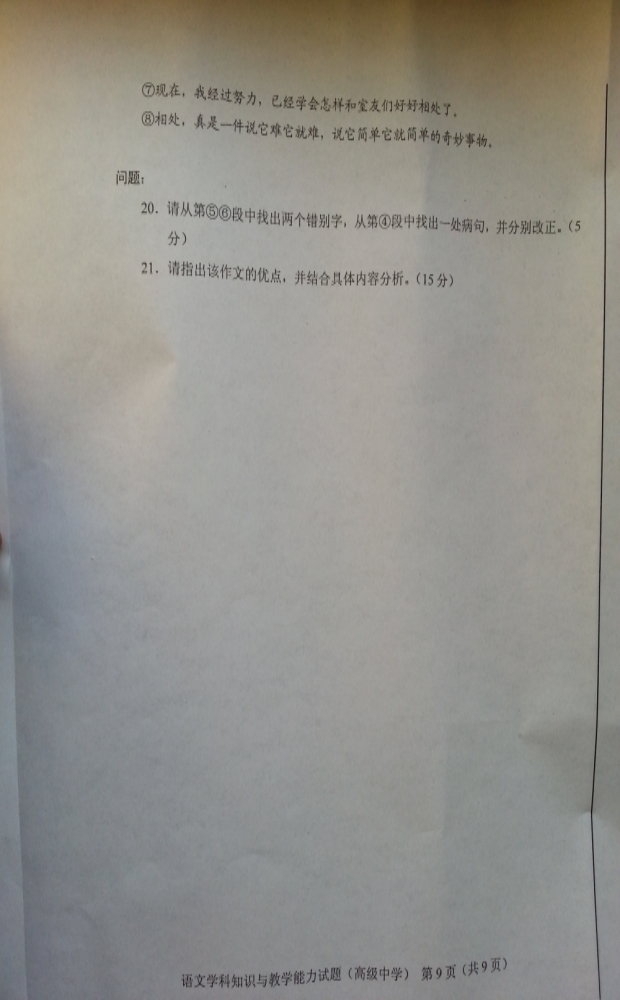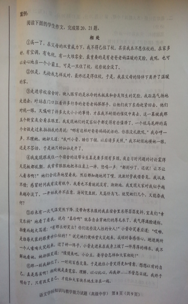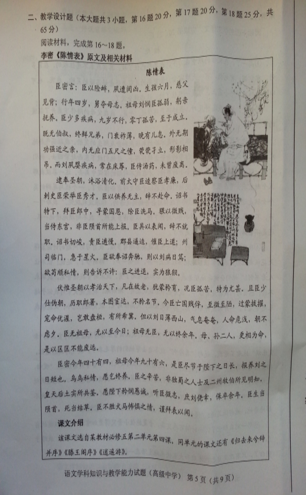 2012下半年教師資格考試《語文科學知識與教學能力》真題(高級中學)