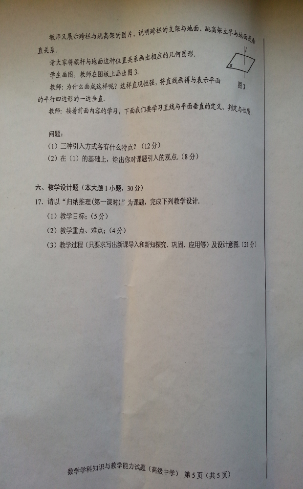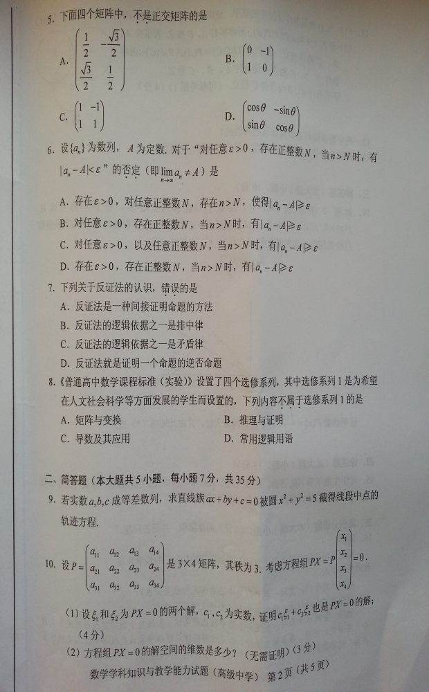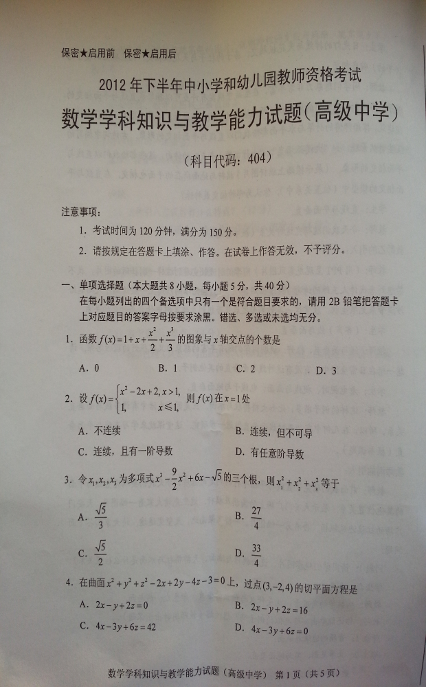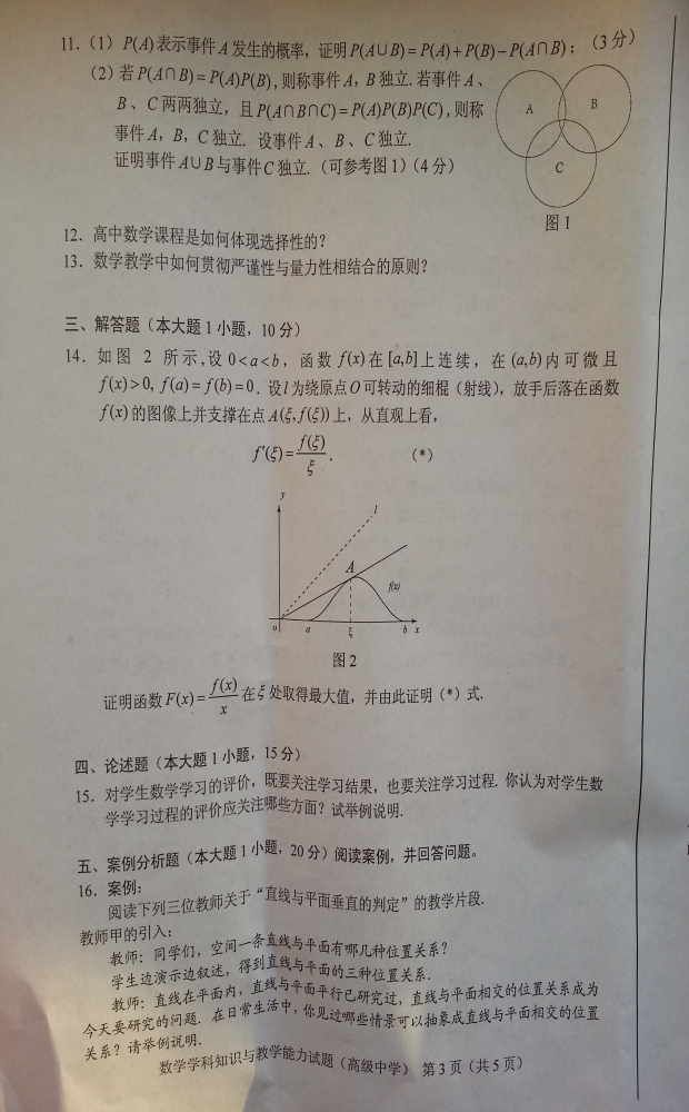 2012下半年《數(shù)學(xué)知識(shí)與數(shù)學(xué)能力》真題(高級(jí)中學(xué))