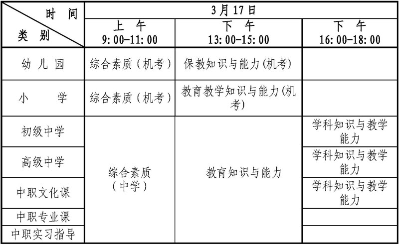 3. 考試日期3月17日,具體時(shí)間安排如下: