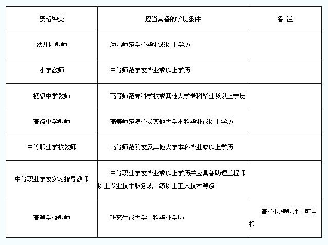 5、高等院校本科畢業的初等教育專業人員,只能直接申請認定與培養目標相對應的小學教師資格,認定初中及以上教師資格需進行教育教學能力測試。