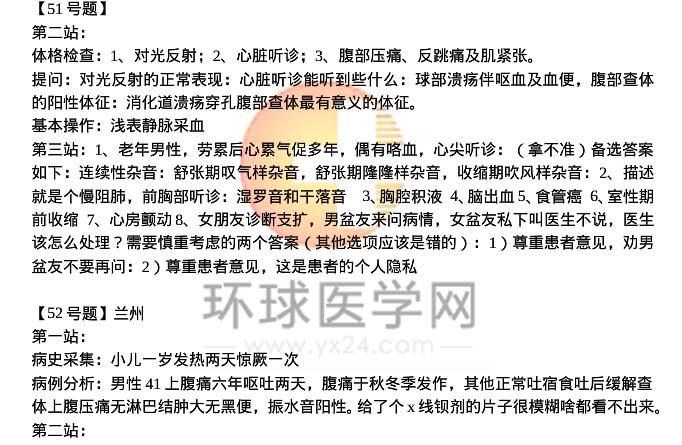 摘要 2013年臨床執業助理醫師實踐技能41-60題匯總(7月3日)