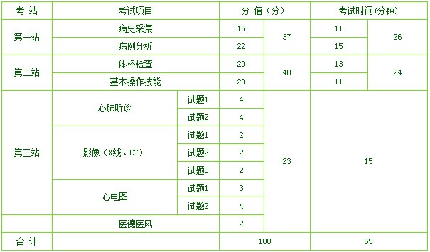 (2)考試方法:體格檢查采用考生互相操作或考生在被檢查者身體上進行操作;基本操作考試方法采用在醫學教學模擬人或醫用模塊等設備上進行操作,考官在操作后提出相關問題。