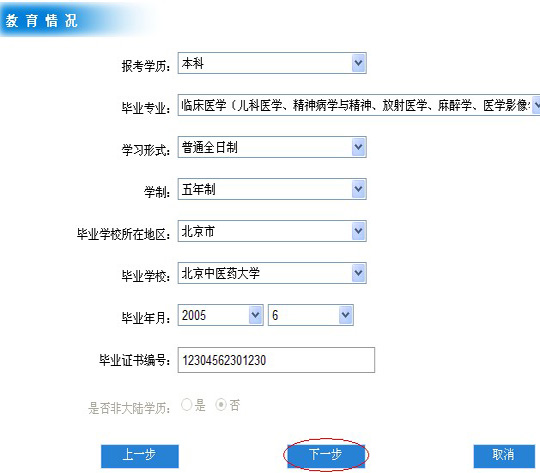 步驟7、填寫教育信息,點(diǎn)擊下一步。如圖所示: