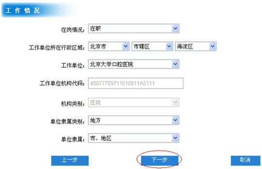 步驟4、填寫工作情況,點(diǎn)擊下一步。如下圖: