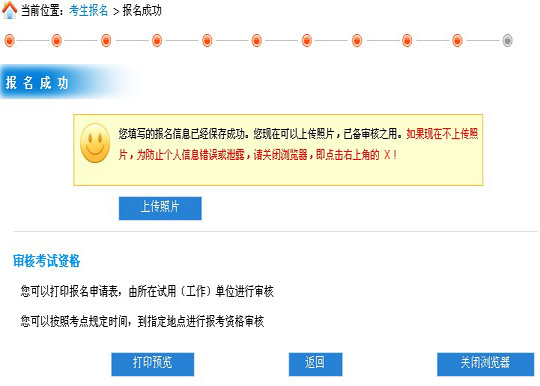 步驟10、上傳照片。可事先將電子照片保存在桌面,上傳時(shí),點(diǎn)擊瀏覽選擇需要上傳的照片,點(diǎn)擊上傳即可。