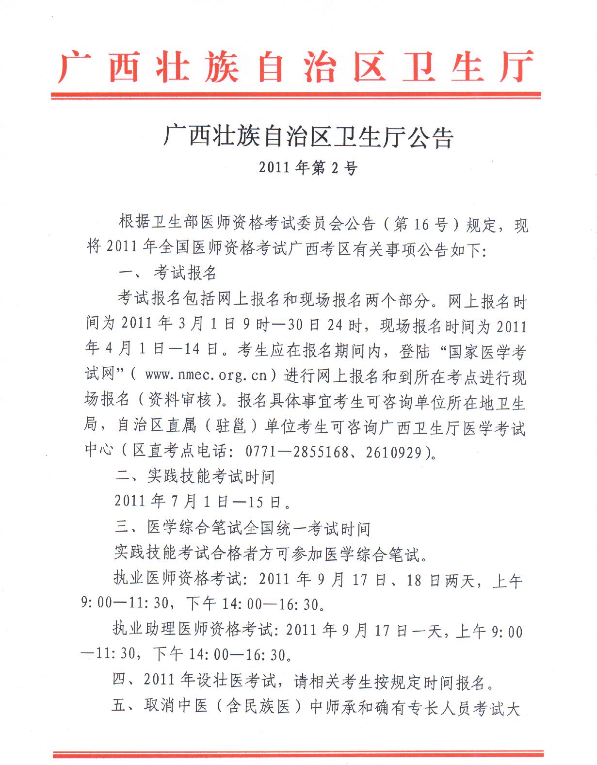 摘要 2011廣西醫師資格考試報名相關事項公告