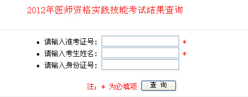2012年全國(guó)執(zhí)業(yè)醫(yī)師實(shí)踐技能考試成績(jī)查詢?nèi)肟?/FONT>