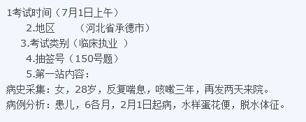 2013年臨床執業醫師實踐技能考生回憶7月1日(21)