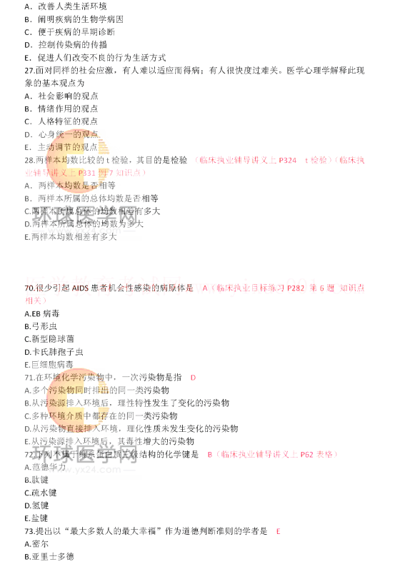 摘要 2013年臨床執業醫師考試第一單元真題對照