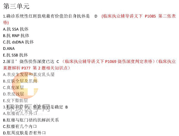 2013年臨床執(zhí)業(yè)醫(yī)師考試第三單元真題對(duì)照