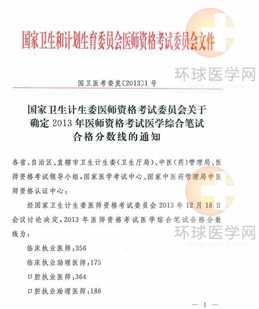 國家衛(wèi)生計生委:關于確定2013年醫(yī)師資格筆試分數(shù)線的通知