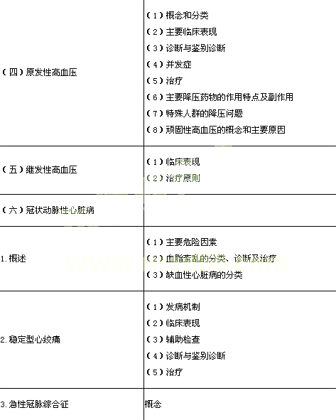2014年臨床執(zhí)業(yè)醫(yī)師《心血管系統(tǒng)》考試大綱