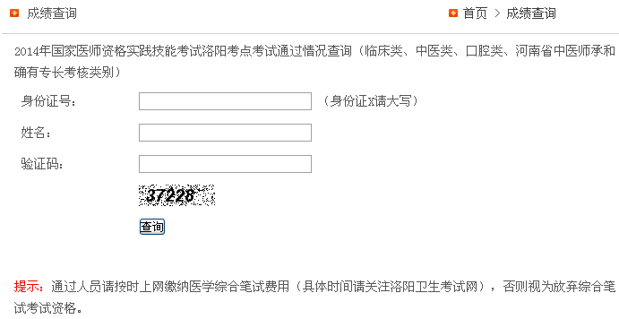 洛陽考點關于公布2014年醫師資格實踐技能考試結果的通知