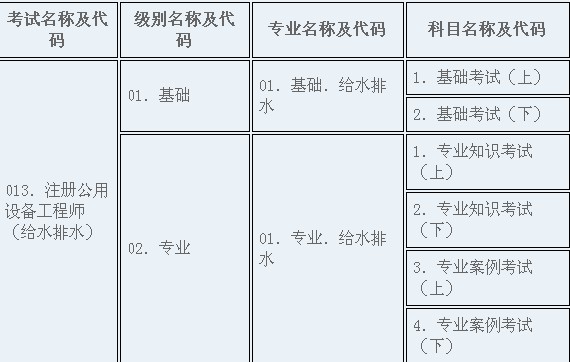 2013年度勘察設計注冊工程師執業資格考試科目及代碼對應表