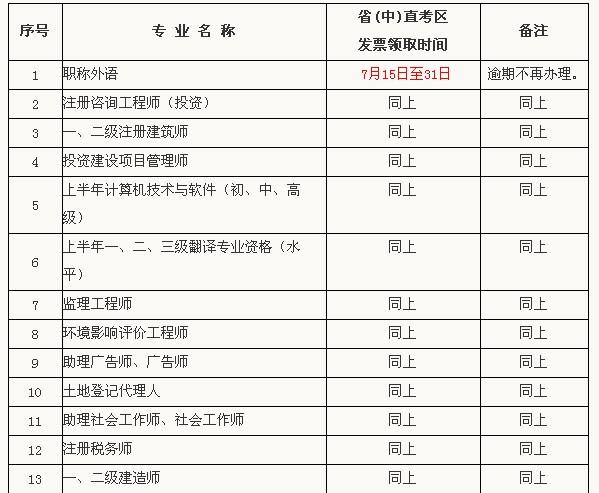 一、選擇省(中)直考區網上報名的考生,按下表通知的時間,到省人事考試中心(長春市南關區南環城路1958號)領取發票。
