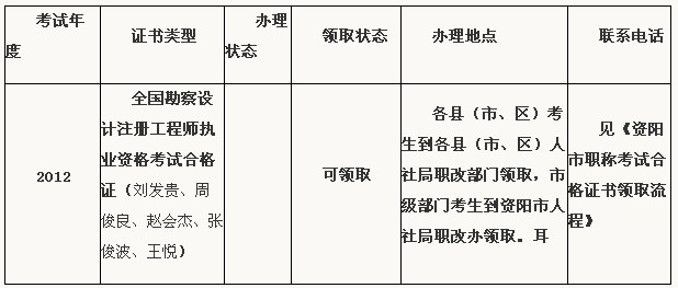 摘要 資陽人事考試網:2012年暖通工程師考試證書領取通知