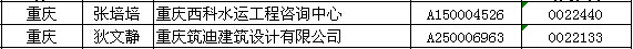 2015年重慶符合暖通工程師初始注冊人員名單(第9批)