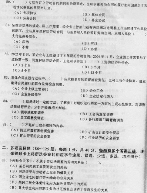 06年5月助理人力資源管理師試題(五)
