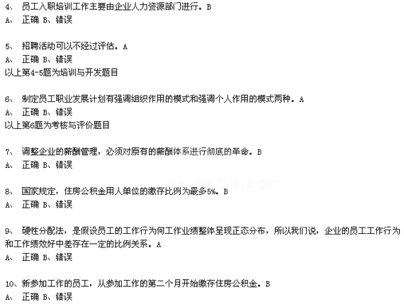 1、 以人為本、量才適用不屬于人力資源職業守則的范圍。B