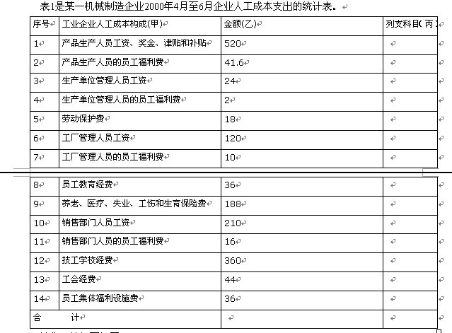 (1)指出各項人工成本的列支科目并填寫在(丙)欄內.
