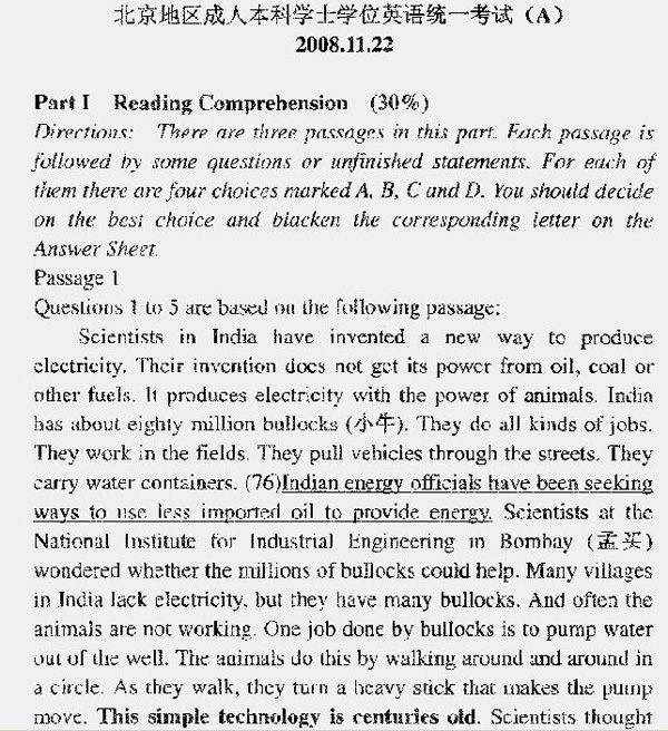 北京地區(qū)08年11月成人學(xué)士學(xué)位英語考試試卷A(1)