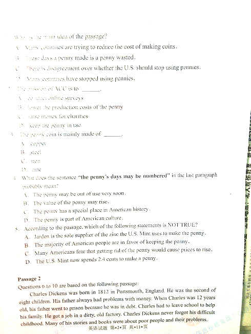 - 2019年5月北京學位英語考試真題參考答案2019-05-24