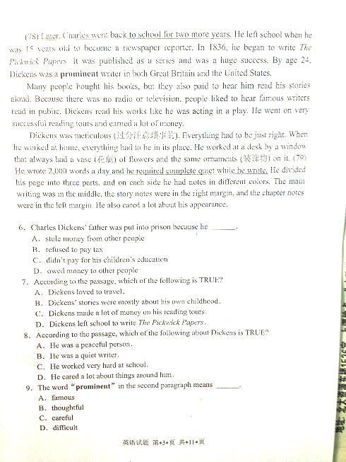 - 2013年江西省成人英語三級考試真題及答案2020-11-03