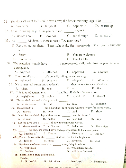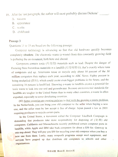 - 2021年廣東成人英語三級考試真題分享2021-05-18