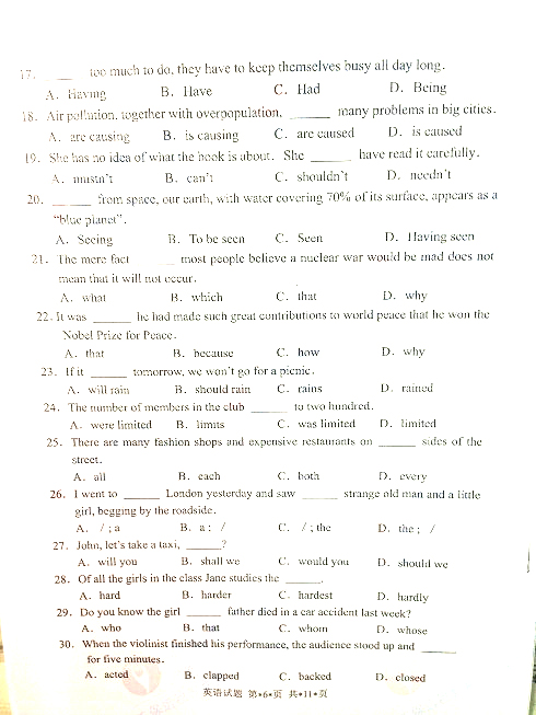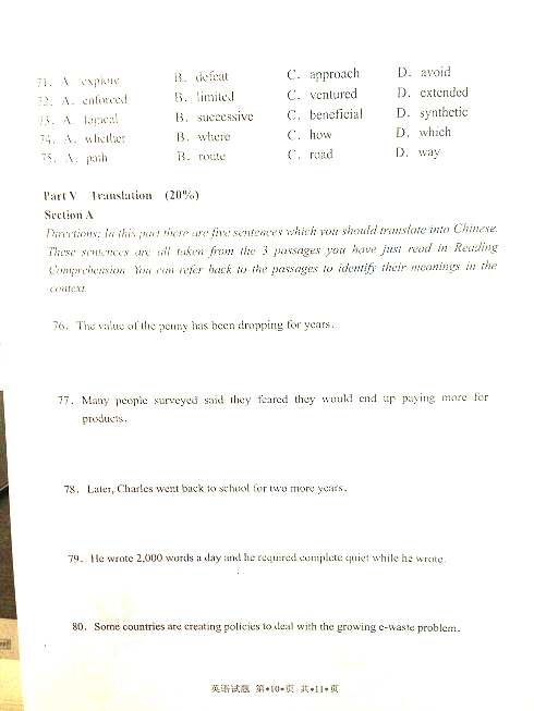 - 2020年湖南省學位英語真題訓練2020-10-26