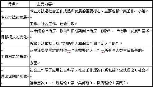 (1)理解西方社會工作在不同發展階段的特點,特別是要掌握社會工作產生和發展的思想來源,認識社會工作產生的歷史背景,各發展階段的重要事件和標志性著作;掌握社會工作專業方法確定的時間。