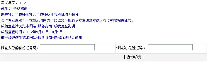 2012年社會工作者考試成績查詢:江蘇查詢入口