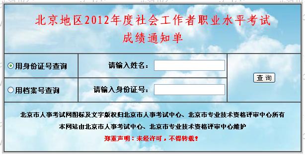 北京地區2012年度社會工作者職業水平考試成績查詢