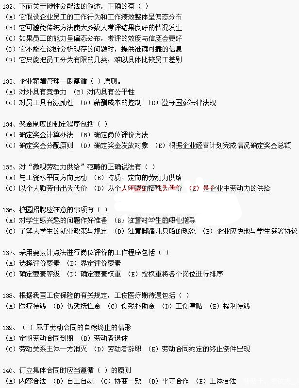 144、勞動力資源的微觀配置即勞動力資源在社會范圍內各用人單位之間的配置。