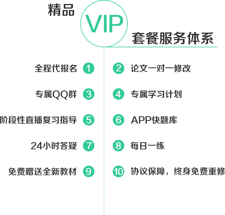 職業(yè)規(guī)劃課+備考總指導(dǎo)+精講班+難點攻破班+考點強化班+真題解析班+模考集訓(xùn)班+答辯專訓(xùn)+考前直播密訓(xùn)+內(nèi)部資料+快題庫+摸底測評(2次)+應(yīng)試技巧班