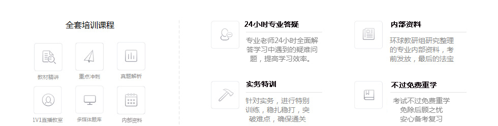 從基礎學習,到習題演練,再到強化培訓,逐步提升;考前獲得環球教研組整理的獨家"內部資料";專業助學老師24小時在線答疑,打造最高通過率。不過重學,讓您后顧無憂! |